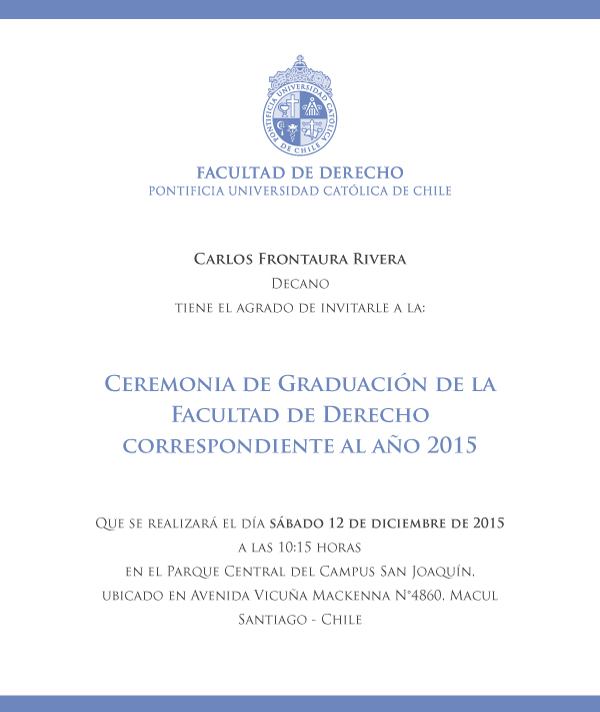 - Ceremonia de Graduación de la Facultad de Derecho correspondiente al año 2015