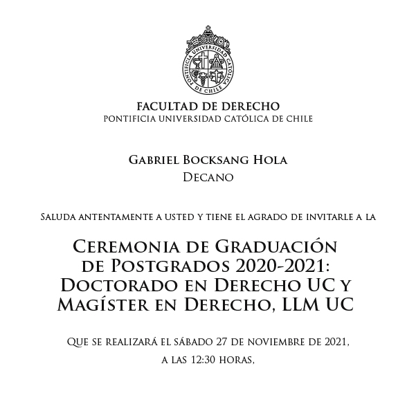 4. Ceremonia de Graduación de Postgrados 2020-2021: Doctorado en Derecho UC y Magíster en Derecho, LLM UC