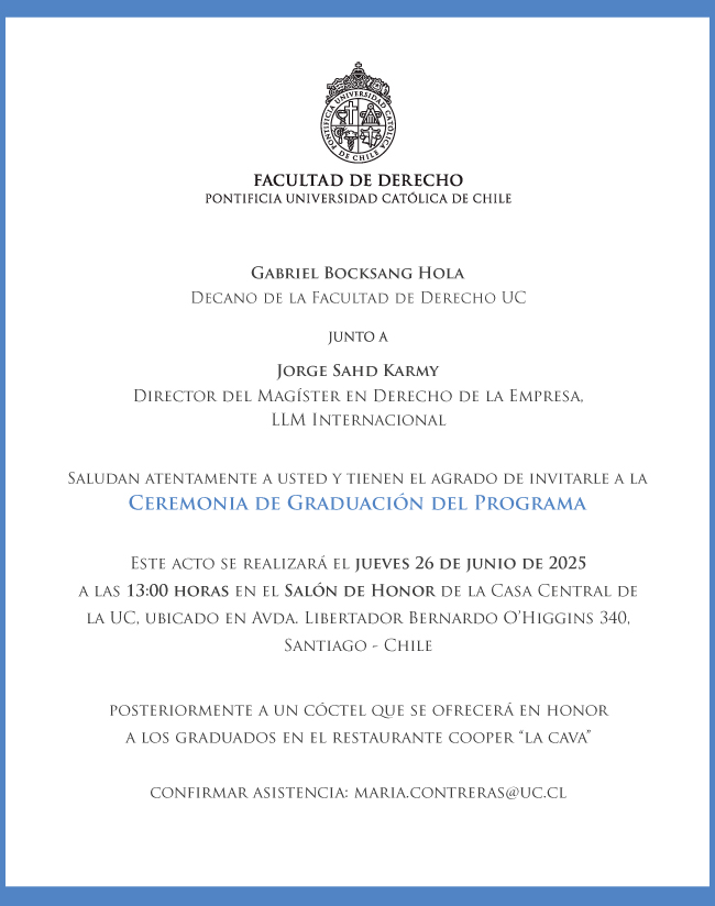 - Ceremonia de Graduación del Programa de Magíster en Derecho de la Empresa, LLM UC (versión internacional) 2025