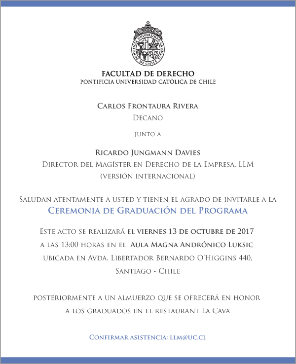 Ceremonia de Graduación del Programa de Magíster en Derecho de la Empresa, LLM (Versión Internacional)