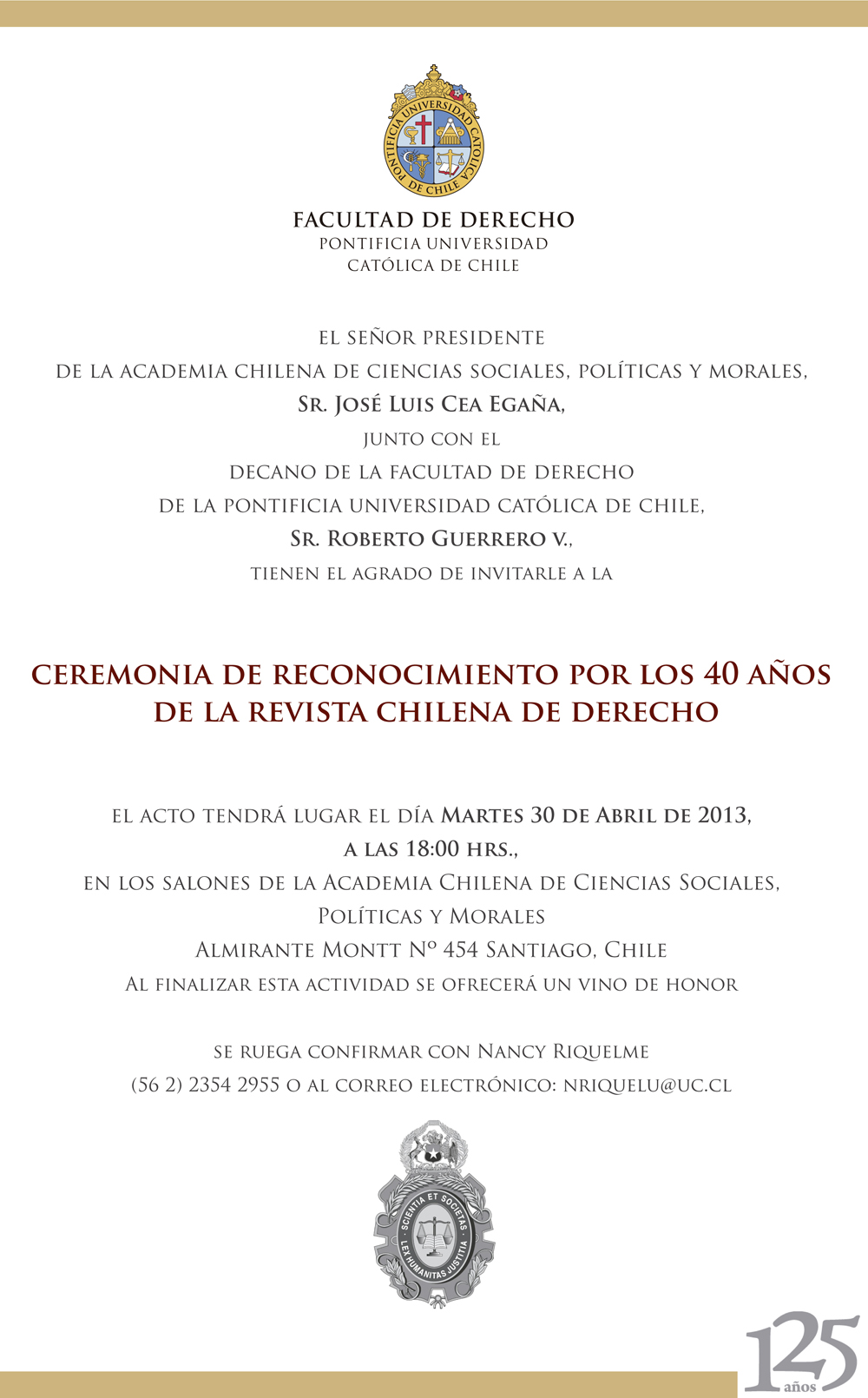 Ceremonia de Reconocimiento por los 40 años de la Revista Chilena de Derecho