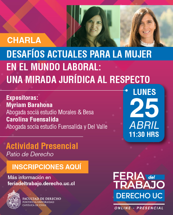 - Charla Feria del Trabajo: Desafíos actuales para la mujer en el mundo laboral. Una mirada jurídica al respecto