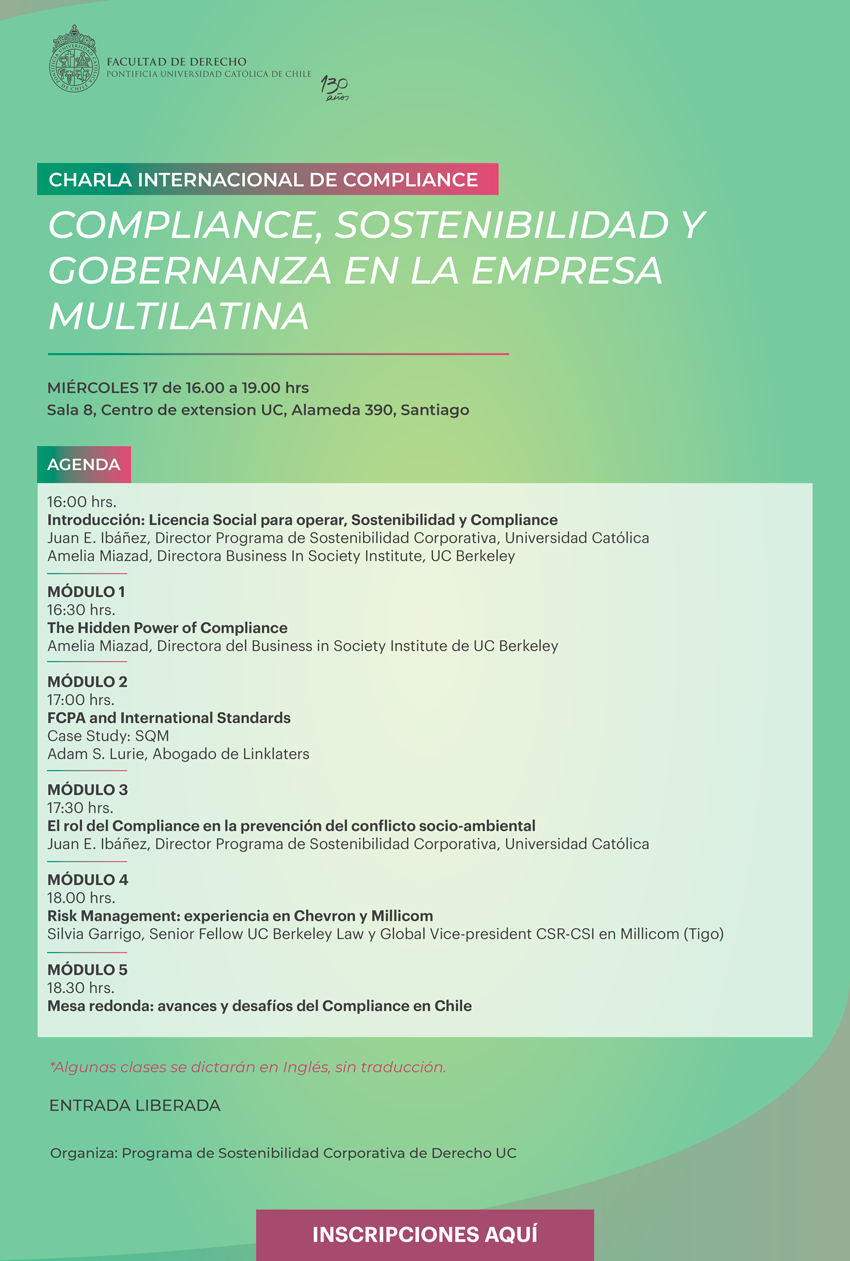 Charla Internacional: Compliance, sostenibilidad y gobernanza en la empresa multilatina