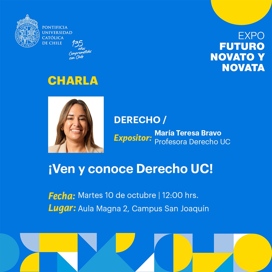 - Charla ¡Ven y conoce Derecho UC! Expo Futuro Novato y Novata 2023 – Profesora María Teresa Bravo