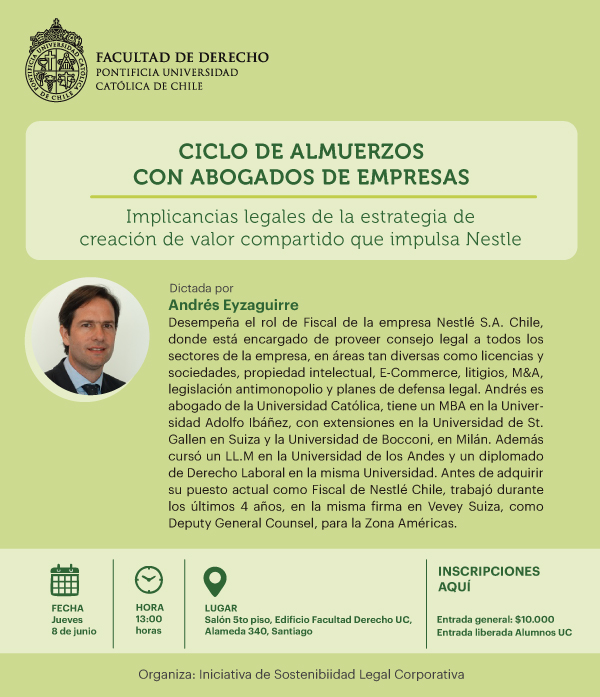 - Ciclo de almuerzo con abogados de empresas: Implicancias legales de la estrategia de creación de valor compartido que impulsa Nestle