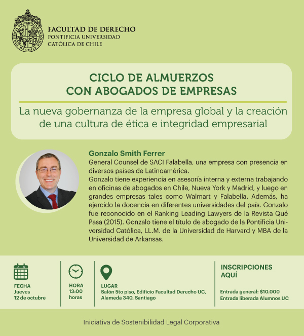 - Ciclo de almuerzos con abogados de empresas: La nueva gobernanza de la empresa global y la creación de una cultura de ética e integridad empresarial