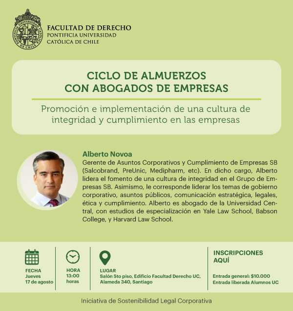 - Ciclo de almuerzos con abogados de empresas: Promoción e implementación de una cultura de integridad y cumplimiento en las empresas
