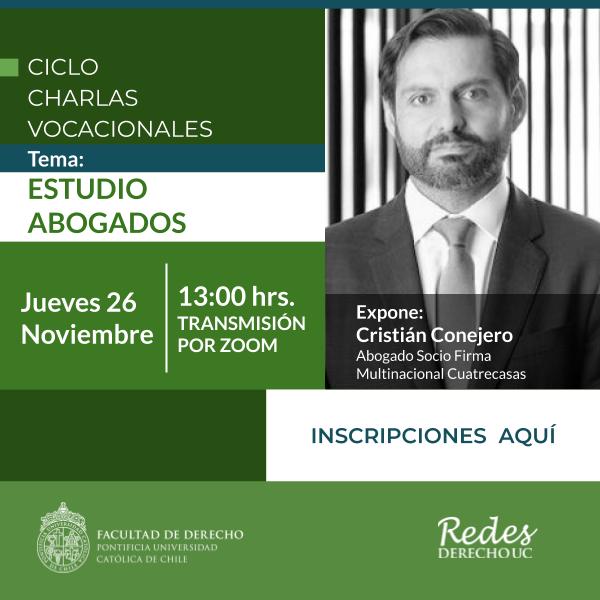 - Ciclo de Charlas Vocacionales Redes Derecho UC: Cristián Conejero (Estudio de Abogados)