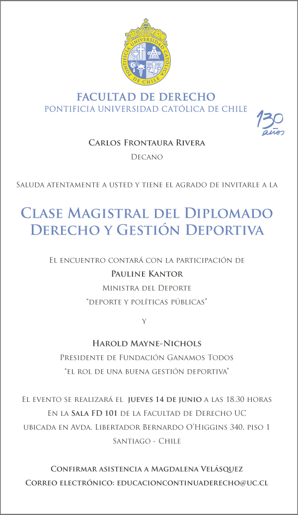 Clase Magistral del Diplomado Derecho y Gestión Deportiva