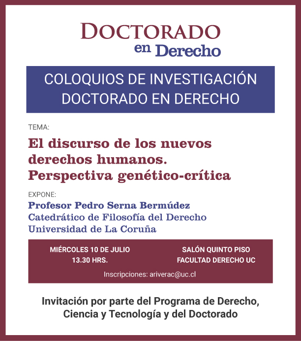 - Coloquios de investigación Doctorado en Derecho: El discurso de los nuevos derechos humanos. Perspectiva genético-crítica
