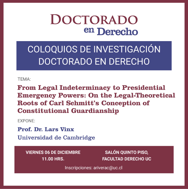 Coloquios de investigación Doctorado en Derecho: From Legal Indeterminacy to Presidential Emergency Powers: On the legal-theoretical roots of Carl Schmitt´s conception of constitutional guardianship