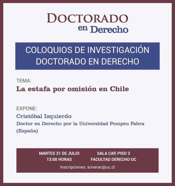 Coloquios de Investigación Doctorado en Derecho: La estafa por omisión en Chile