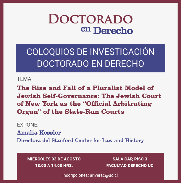Coloquios de investigación Doctorado en Derecho: The rise and fall of a pluralist model of jewish self-governance. The jewish court of New York as the “official arbitrating organ” of the state-run courts