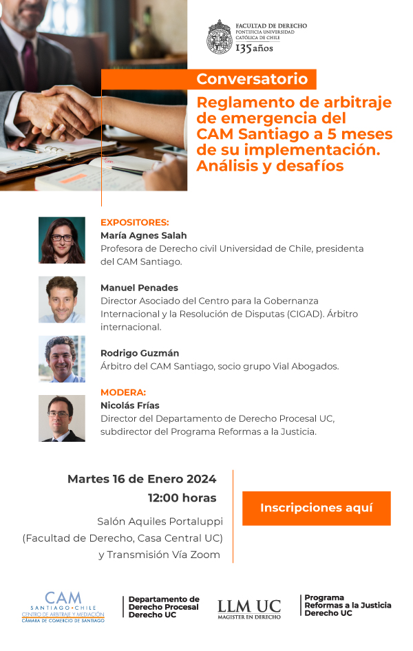 Conversatorio: Reglamento de arbitraje de emergencia del CAM Santiago a 5 meses de su implementación. Análisis y desafíos