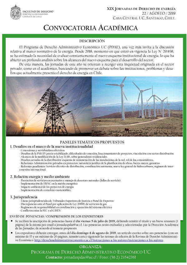 Convocatoria Académica: XIX Jornadas de Derecho de Energía