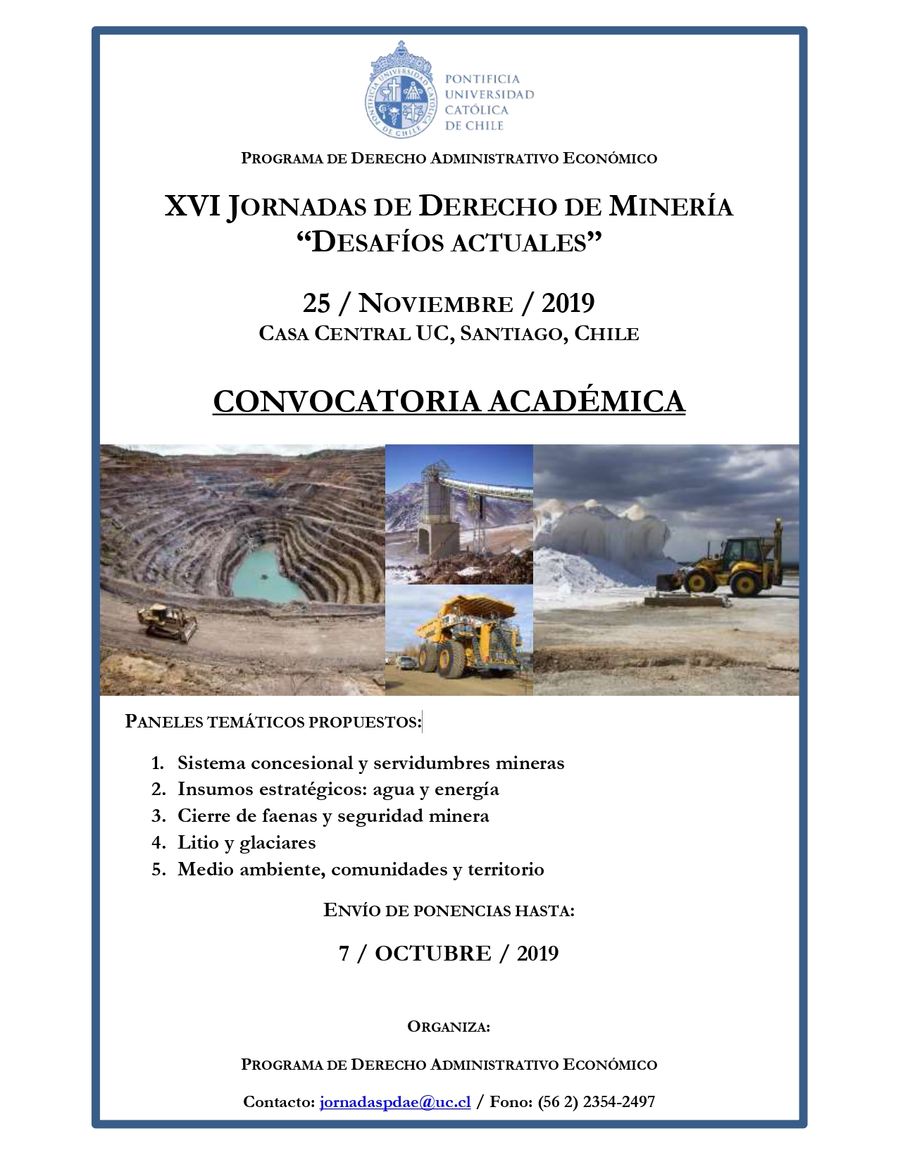 4. Convocatoria Académica XVI Jornadas de Derecho de Minería: “Desafíos actuales”