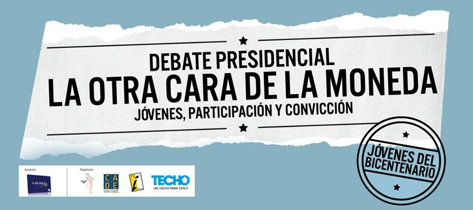 Este miércoles 5 de junio a las 13:30 hrs. en el patio de la facultad de ingeniería (campus San Joaquín), se realizará el primer debate presidencial organizado por alumnos UC, que responde a la gran inquietud que tiene nuestra comunidad respecto a las próximas elecciones presidenciales. Es por ello, que el Centro de Alumnos de Derecho UC, junto a los Centros de Alumnos de Ingeniería, Administración y Economía, además de Un Techo para Chile tienen el agrado de invitarlos al foro: “Jóvenes del Bicentenario: La otra cara de La Moneda. Jóvenes, Participación y Convicción”.