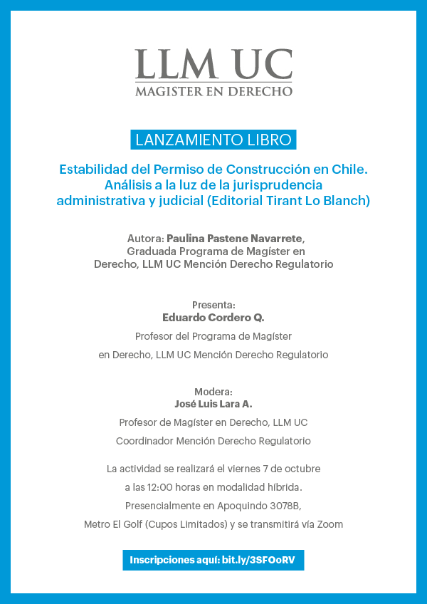 - Lanzamiento de libro: Estabilidad del permiso de construcción en Chile. Análisis a la luz de la jurisprudencia administrativa y judicial