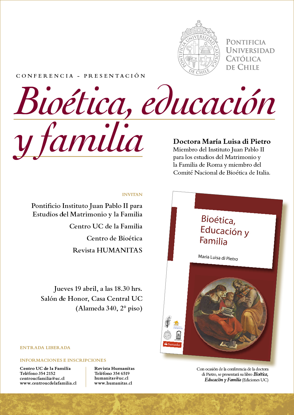 El Centro UC de la Familia, el Centro de Bioética de la UC y la Revista Humanitas, invitan al evento de lanzamiento del libro