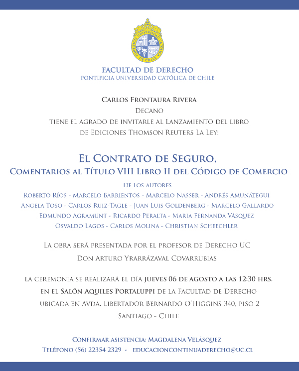 - Lanzamiento del libro El Contrato de Seguro, Comentarios al Título VIII Libro II del Código de Comercio