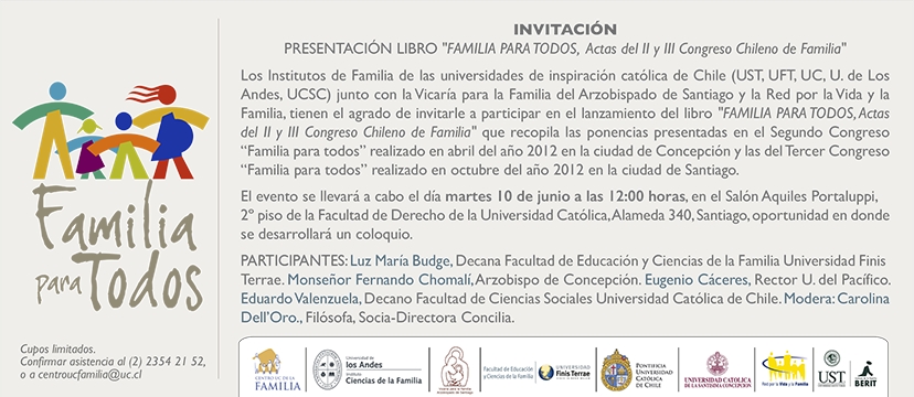 Más información e inscripciones: centroucfamilia@uc.cl Teléfono: (56 2) 2354 2152
