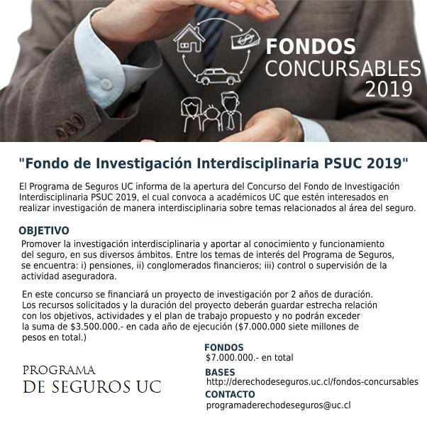 - Plazo Convocatoria: Fondo de Investigación Interdisciplinaria PSUC 2019