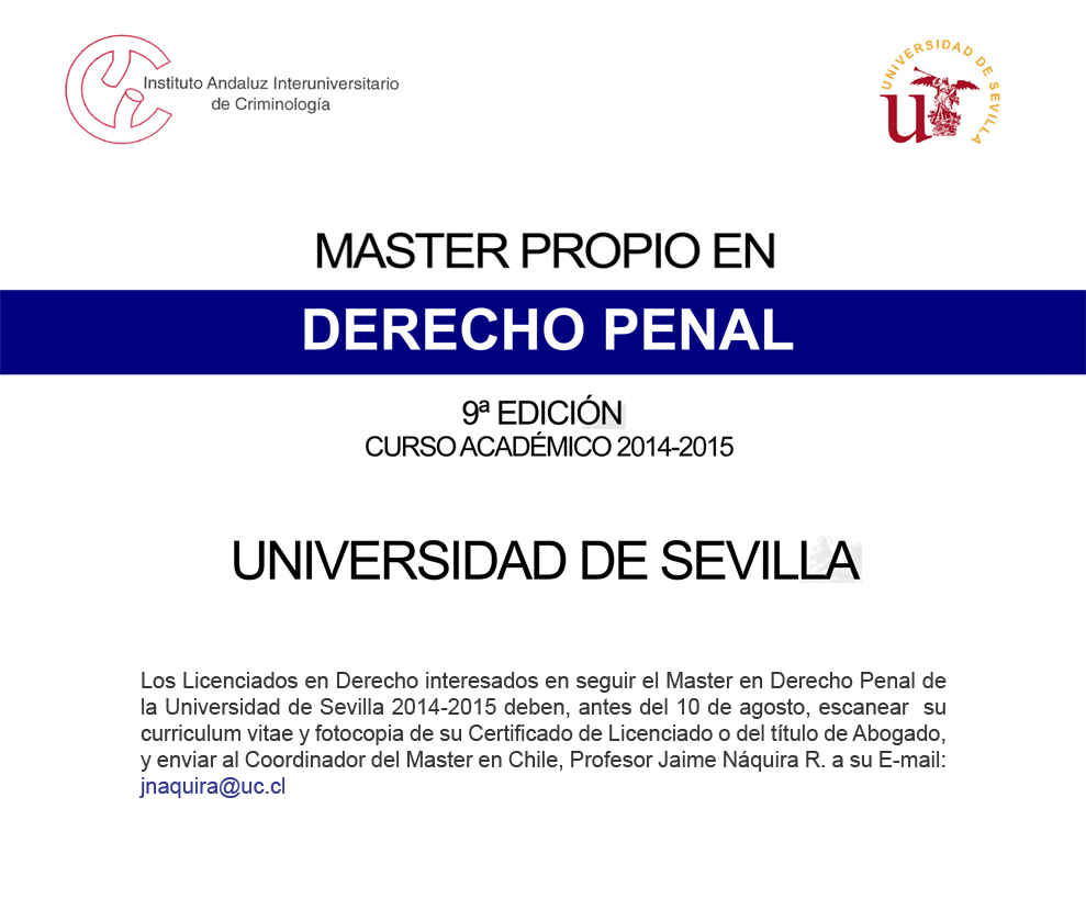 Plazo de envío documentación para postular al Master en Derecho Penal Universidad de Sevilla