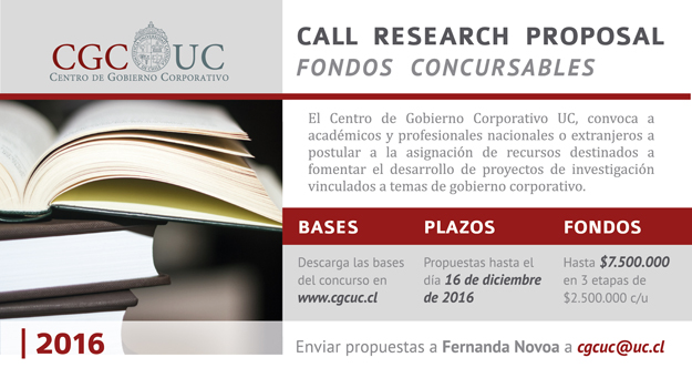 Plazo de postulación Fondos Concursables CGCUC: Call research proposal