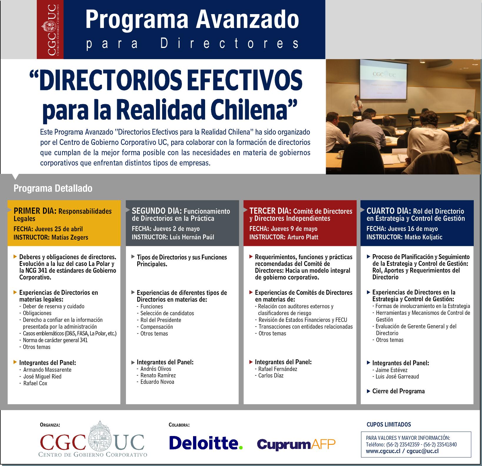 Programa Avanzado “Directorios Efectivos para la Realidad Chilena”. Última jornada “Rol del Directorio en Estrategia y Control de Gestión”
