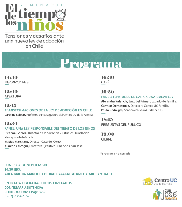 - Seminario El tiempo de los niños: Tensiones y desafíos frente a una nueva ley de adopción en Chile
