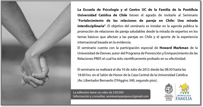 - Seminario “Fortalecimiento de las relaciones de pareja en Chile: una mirada interdisciplinaria”