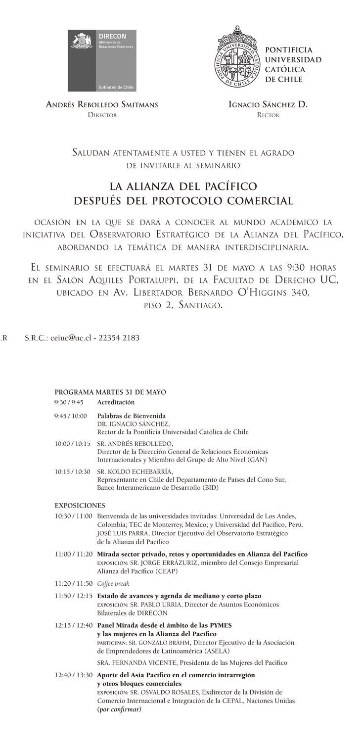 - Seminario: La Alianza del Pacífico después del Protocolo Comercial