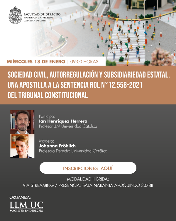 - Seminario: Sociedad civil, autorregulación y subsidiariedad estatal. Una apostilla a la sentencia Rol N° 12.558-2021 del Tribunal Constitucional