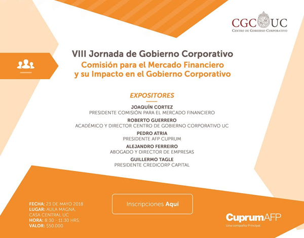 - VIII Jornadas de Gobierno Corporativo: Comisión para el Mercado Financiero y su Impacto en el Gobierno Corporativo