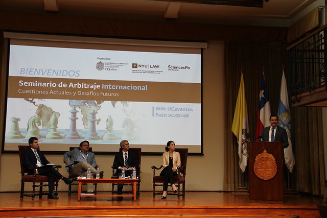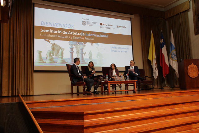 El arbitraje Internacional se tomó Derecho UC el pasado 16 y 17 de noviembre. Durante dos jornadas profesionales líderes en esta materia, provenientes de las mejores Facultades de Derecho latinoamericanas, y de universidades de renombre mundial -NYU, Columbia, Harvard, Paris 1 y 2, Cambridge, Oxford, Roma, entre otras-, se dieron cita en la primera versión del Seminario Arbitraje Internacional: Cuestiones Actuales y Desafíos Futuros.